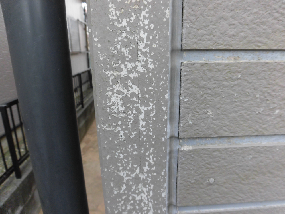 シーリングの劣化により、外壁が水を吸って塗膜剥離を起こしています。